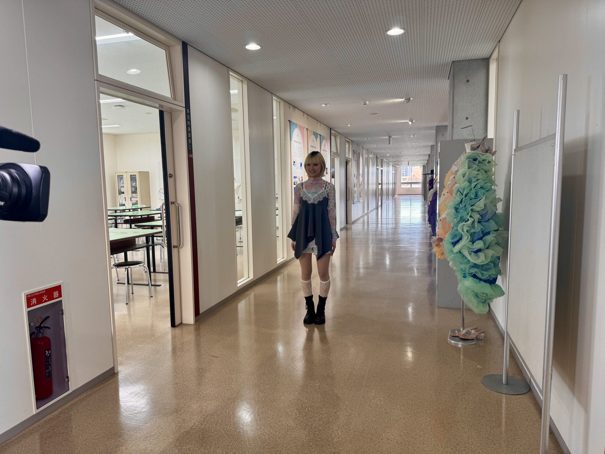 本学ファッション総合学科・テクニカル専攻科の学生が、FBS福岡放送「めんたいワイド」の取材を受けました。