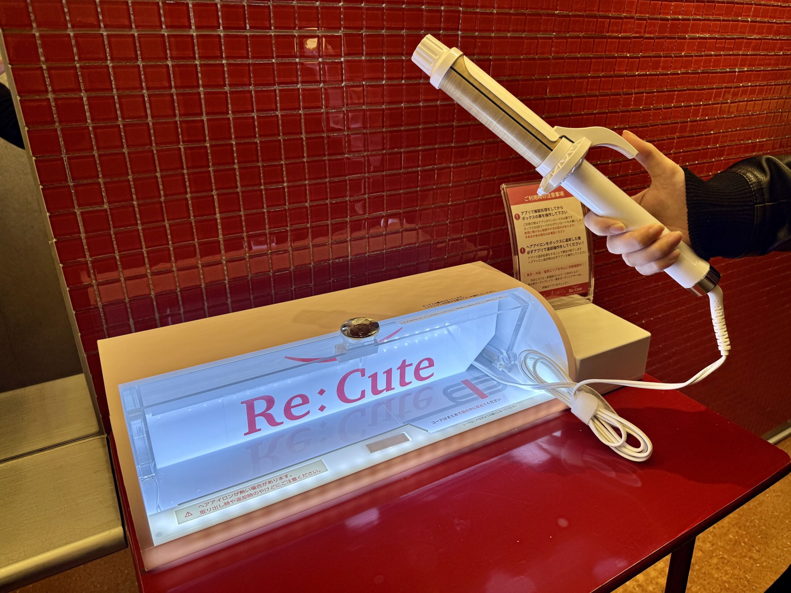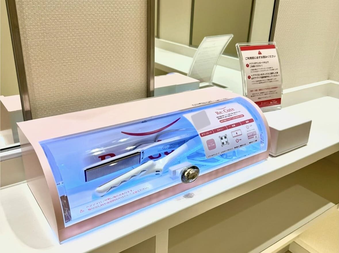 「ReCute(リキュート)」は、商業施設やオフィスビルなどのパウダールームを中心に全国で展開している、ヘアアイロンのレンタルスポットです。